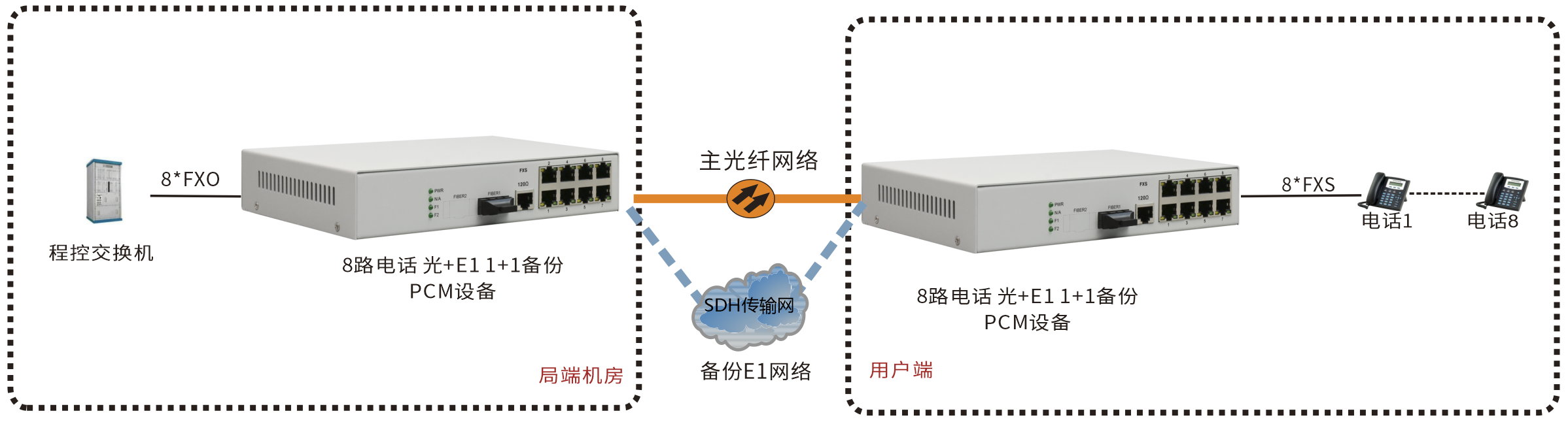 8路電話光纖+E1 1+1備份 PCM設(shè)備
