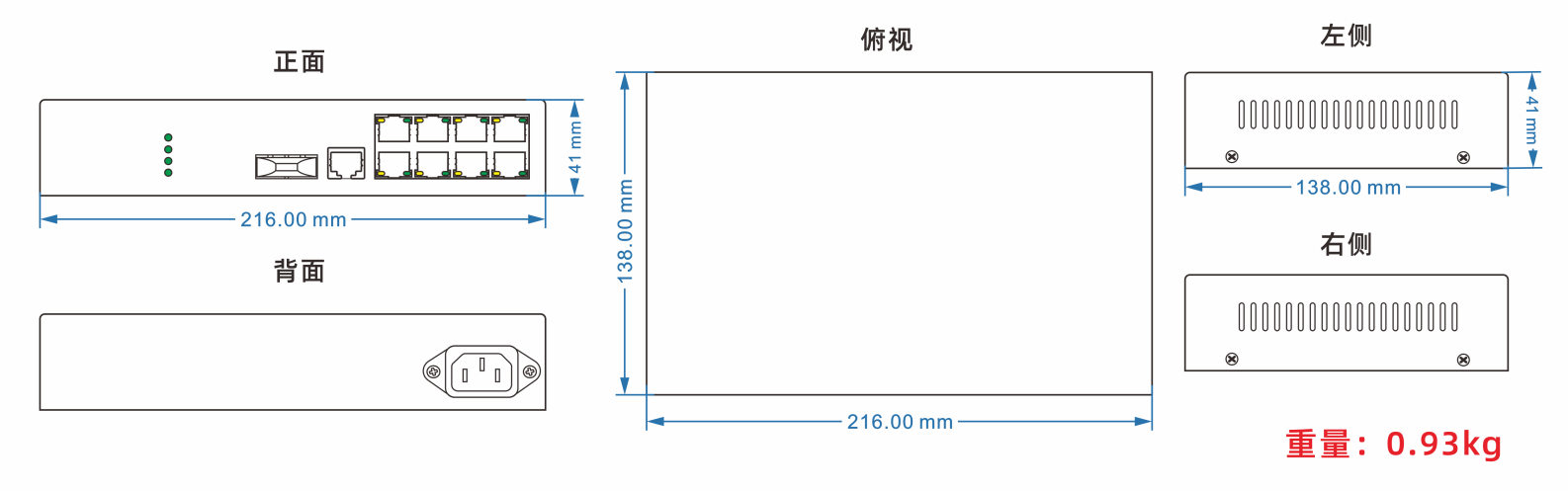 產(chǎn)品尺寸 (長×寬×高)  216*138*41mm  桌面式