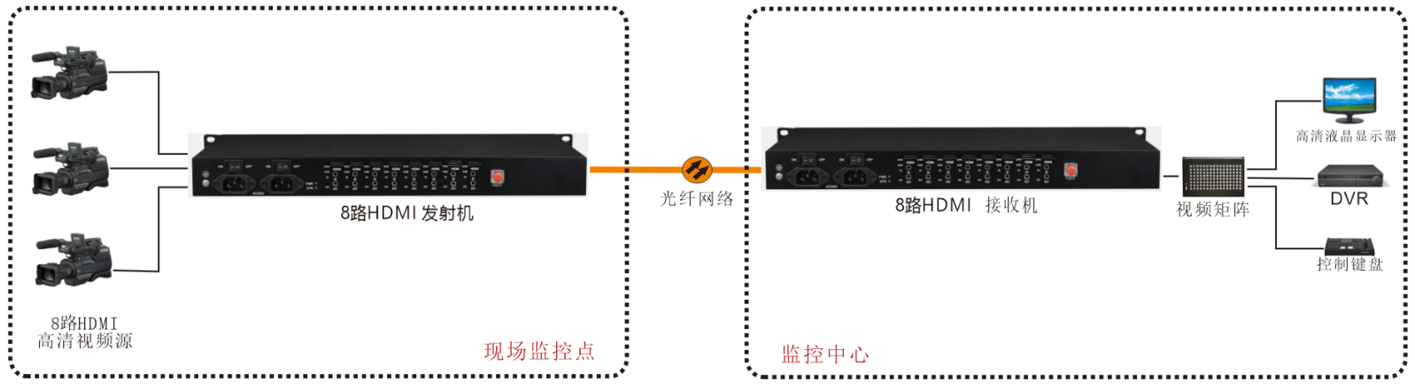 | 產(chǎn)品功能描述 | 在光纖上同時傳送8路2K 60HZ HDMI 信號,可帶1路雙向獨立音頻 |